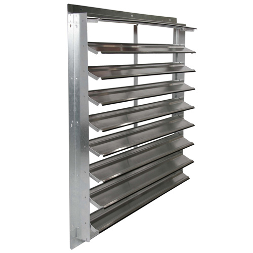 The Model 556 is a COUNTER BALANCED rear flanged vertical mount automatic exhaust shutter. It is designed to allow horizontal airflow in one direction and to prevent reverse airflow while providing protection from environmental elements when the airflow stops. The blades open with airflow and minimize the wear load on the fan motor and close by gravity when the fan shuts down. Counter balanced blades allow the shutter to be mounted vertically to 45 degrees and has flanged ends for added weather protection. Ideal for direct-drive or belt-driven exhaust fans. Do not use with vane axial or tube axial fans.